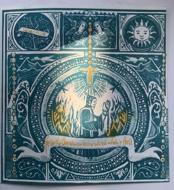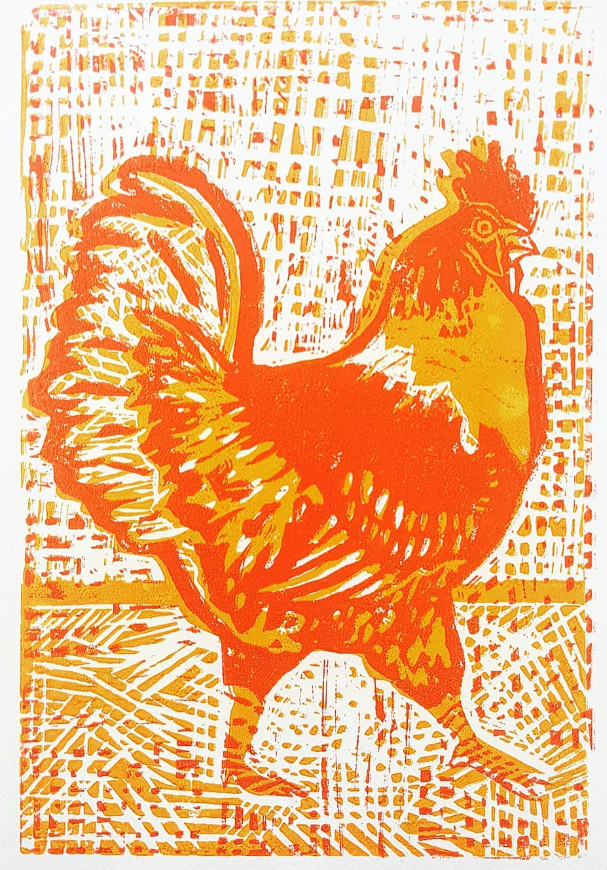 Lino print of a Chicken 2019